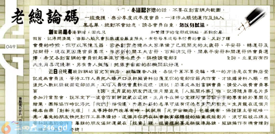 049期:六合皇金句/老总论码/萧公子/林大师/五行夺码/老总信箱截图