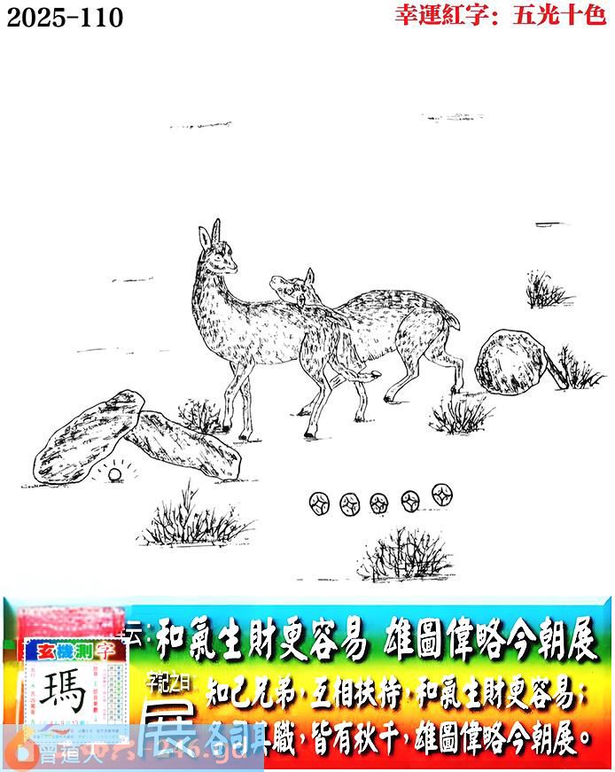 110期老版跑狗一字記之曰:【展】 詩雲:和氣生財更容易,雄圖偉略今朝展。 知己兄弟,互相扶持,和氣生財更容易; 各司其職,皆有秋千,雄圖偉略今朝展。 玄機測字:《瑪》