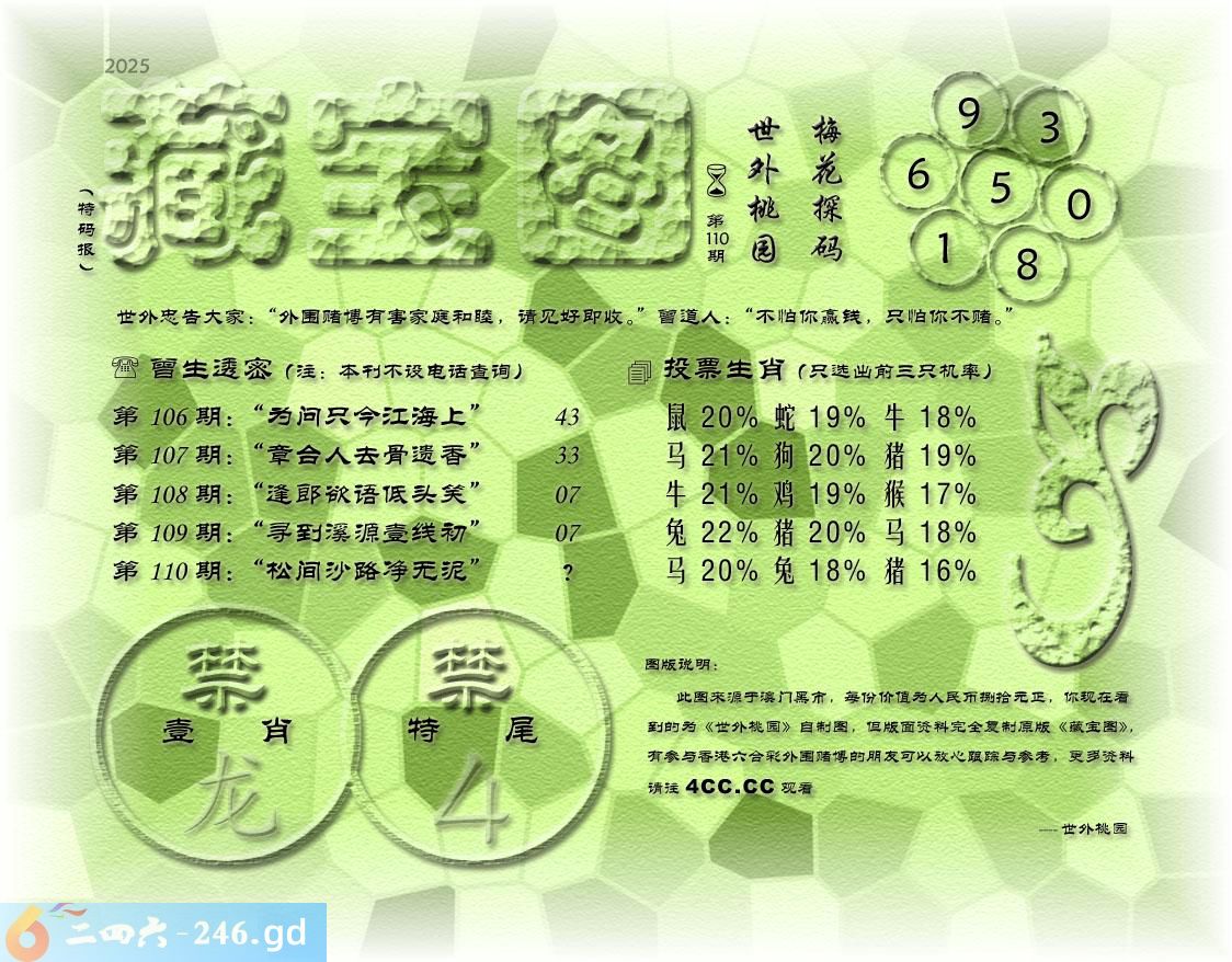 110期藏寶圖 新:合处畴能证不疑 老:松间沙路净无泥 禁:龙 禁:4尾 玄機字:《夙》
