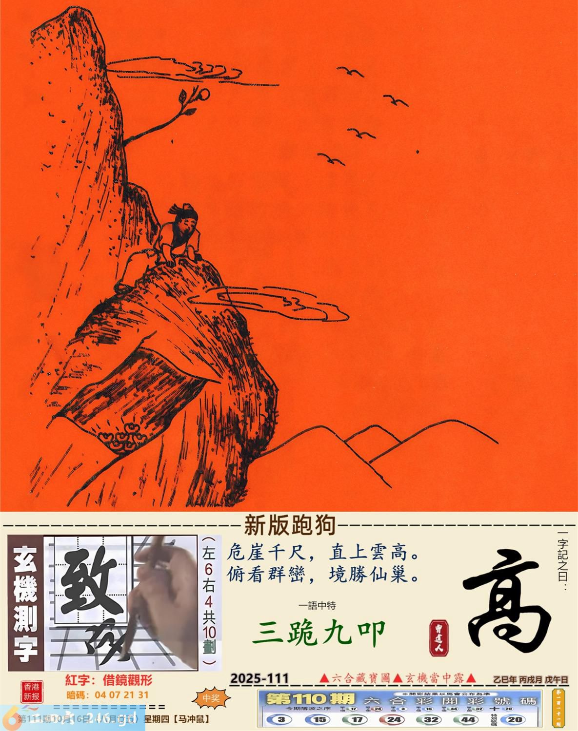 2025年10月16日111期鼠(壬子)(天上火) 111期:老版跑狗玄機一字記之曰:【發】 詩云:靈鴞展翅蓄勢發他日高飛迎騰達 靈鴞展翅,蓄勢待發,他日高飛迎騰達; 心懷理想,別樹一格,奇謀妙計盡掌握。 玄機測字:《逆》 密圖詩:二國邦交享太平 《記》:落入平川斷其尾 特碼大小單雙句:登上寶座十二年 今期必中:曹洪 111期:特碼歇后語 抱黄连敲门-----苦到家了 111期正版四字梅花诗:虎背熊腰。 111期火车头:烧伤猴。诗:牛死龙伤,今期生肖住门庭。 111期香港第一手欲钱料:鸡? 111期曾道人说:“婊子”? 111期另版四字梅花诗:变出中间。 111期香港第一手欲钱料:欲钱找一力金毛遍全身。 111期曾道人说:“女人二十最喜欢得到什么东西”? 111期:二字經:武笵 111期:丈母娘是特码 111期:智力金壤:头晕目眩 111期:信箱紅字:【借鏡觀形】 111期:【暗碼:04-07-21-31】 111期:一語中特:【三跪九叩】 發财玄機圖:爬竿追逐伸頭縮頸圖中明猴紅藍 111期:藏寳圖 新:始觉江山近故乡 老:曲阑干外天如水 禁:兔禁:6尾玄機字《间》 2025年111期【生活幽默】版 〖珍珠項鏈〗 夏爾送給未婚妻一串珍珠項鏈,對未婚妻說:“親愛的,你瞧這串項鏈,上面正好有22顆珍珠。” 未婚妻:“爲什麽是22顆呢?”夏爾:“和你的歲數一樣。” “原來是這麽回事,”未婚妻暗暗地責備自己,“要是把自己30歲的真實年齡告訴他就好了。"