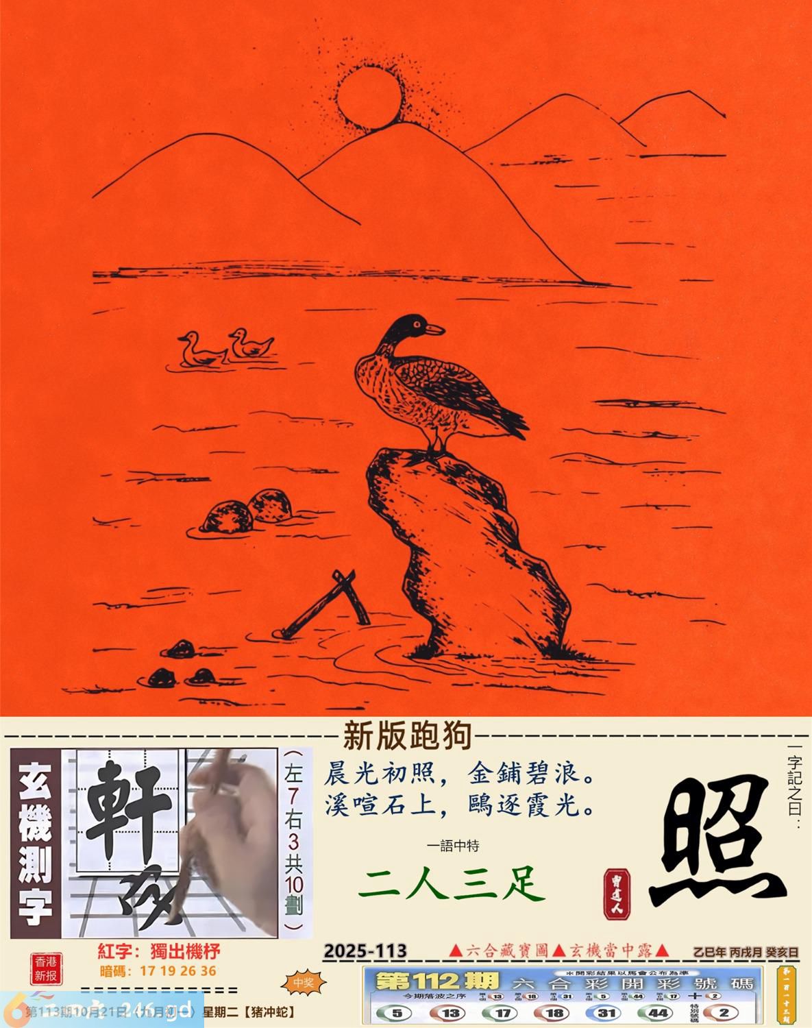本帖最后由小歪于2025-10-2019:52编辑 2025年10月21日113期蛇(丁巳)(大海水) 113期:老版跑狗玄機一字記之曰:【計】 詩云:唯有錦囊與妙計化危為機心仔細 重重受困,如何突圍,唯有錦囊與妙計; 頭腦靈活,察看端倪,化危為機心仔細。 玄機測字:《綾》 密圖詩:山中無老虎 《記》:三門自有九尾數 特碼大小單雙句:抱着老婆暖被窩 今期必中:貂禪 113期:特碼歇后語 豆腐里面挑骨头-----故意找麻烦 113期正版四字梅花诗:至上励合。 113期火车头:烧伤狗。诗:羊死鸡伤,开过一门又一门。 113期香港第一手欲钱料:小肚鸡肠。 113期曾道人说:“金?” 113期另版四字梅花诗:掩耳盗铃。 113期香港第一手欲钱料:欲钱找又爱又恨的。 113期曾道人说:“为什么男人喜欢抽烟呢”? 113期:二字經:當初 113期:温度计是特码 113期:智力金壤:微服出巡 113期:信箱紅字:【獨出機杼】 113期:【暗碼:17-19-26-36】 113期:一語中特:【二人三足】 發财玄機圖:吃苦耐劳強壯壯實圖中明牛藍綠 113期:藏寳圖 新:犹祝当时卓长官 老:堪笑牡丹如斗大 2025年113期【生活幽默】版 〖介紹對象〗 一大爺是個媒人,給以小伙介紹對象:“你看啊,這三個女的,這胖的冬天抱着酥軟暖和,這瘦的夏天抱着凉,這不胖不瘦的冬不冷夏不熱。” 小伙好奇:“大爺你咋這麽清楚?” 大爺一臉認真:“没用過大爺能随便給你介紹嗎?”