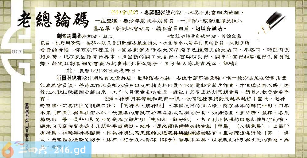017期:六合皇金句/老总论码/萧公子/林大师/五行夺码/老总信箱截图