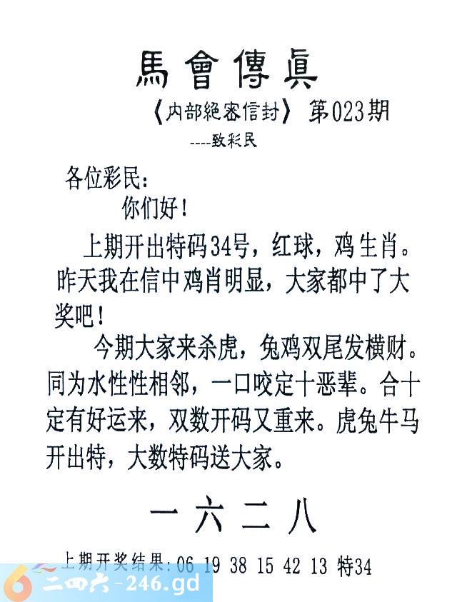 023期:首发推荐:≮馬會傳眞≯→(香港正版)