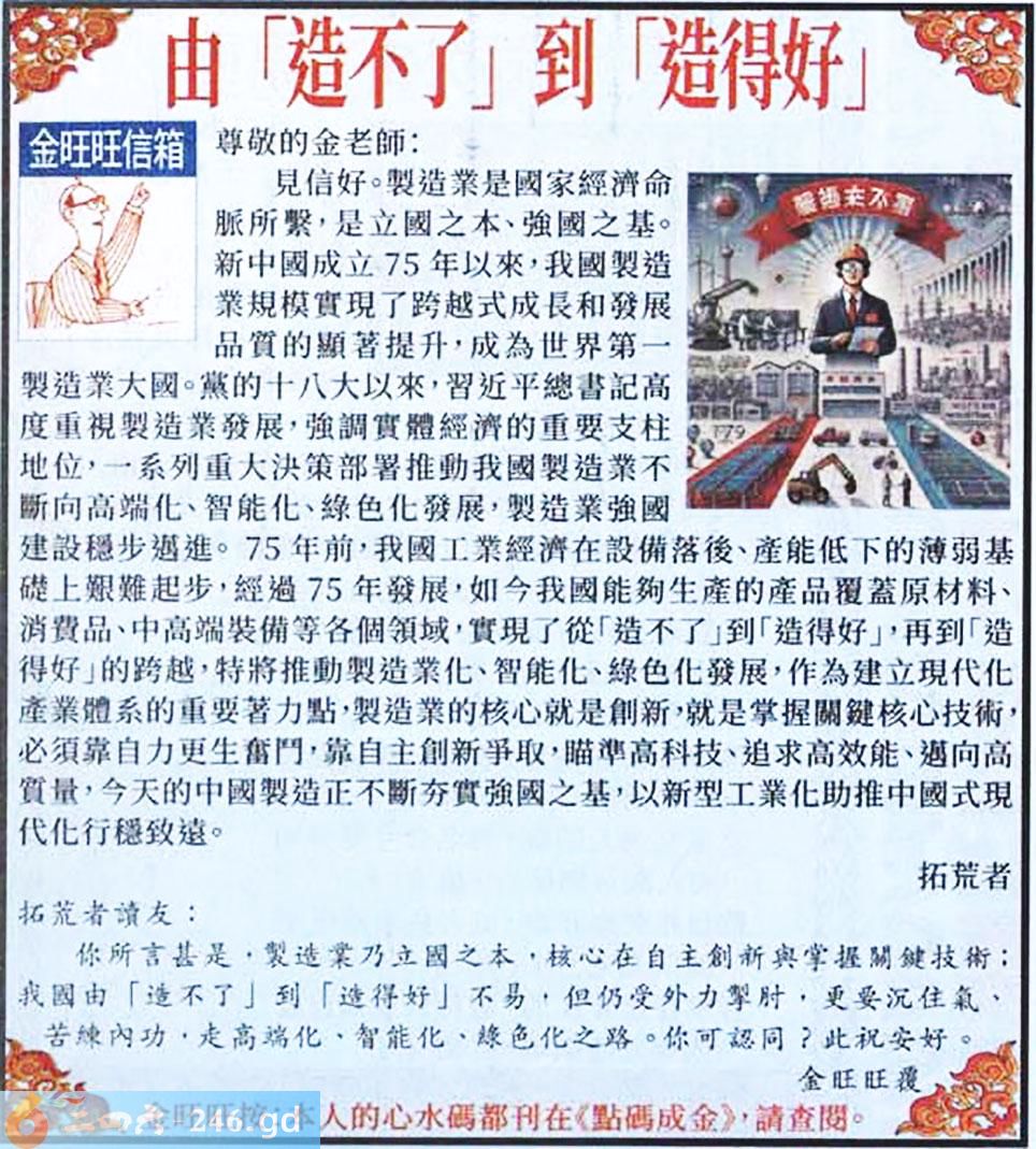 030期:金旺旺信箱彩民推荐→→《由「造不了」到「造得好」》
