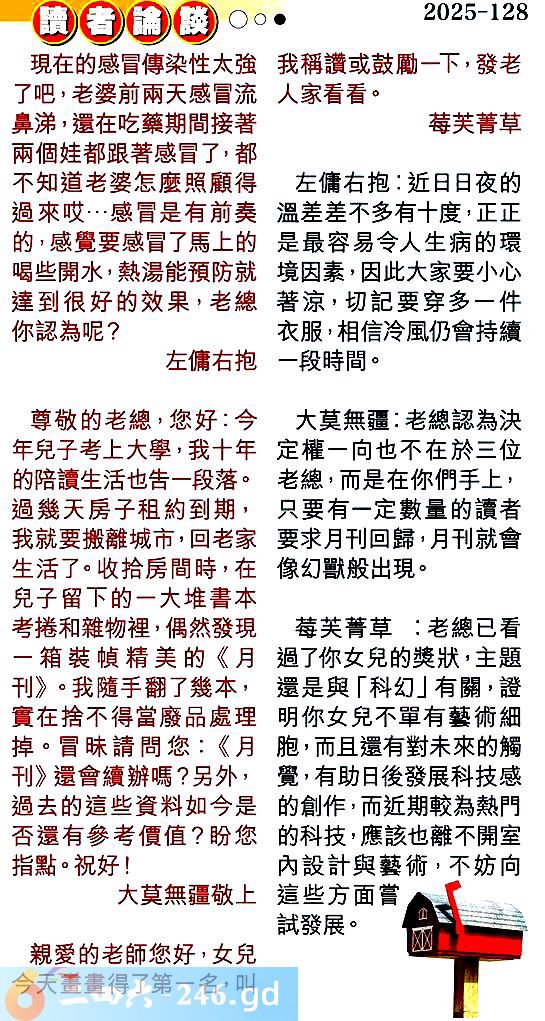 2025127期127期:彩民推荐〖貼信讀者論壇〗