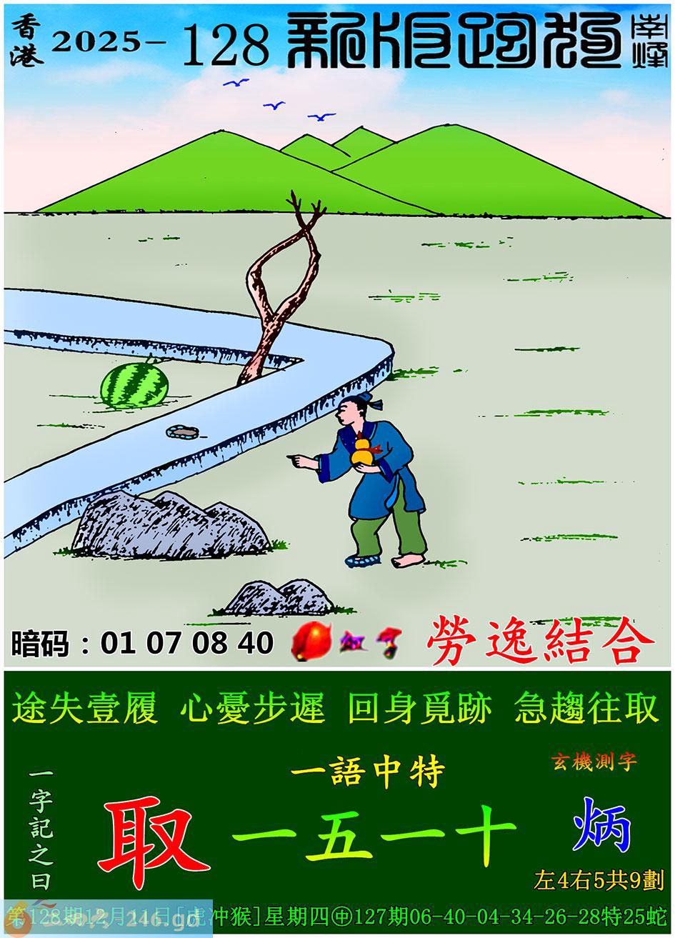 128期跑狗一字記之曰:【取】 途失壹履,心憂步遲。 回身覓跡,急趨往取。 玄機測字:《炳》 一語中特:一五一十
