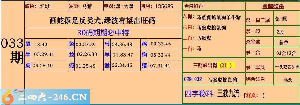 033期:30码期期必中特
