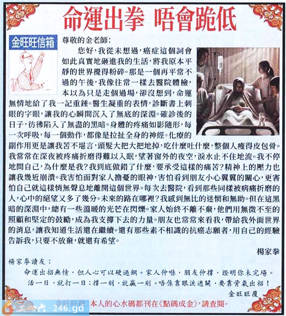 008期:金旺旺信箱彩民推荐→→《命運出拳 唔會跪低》