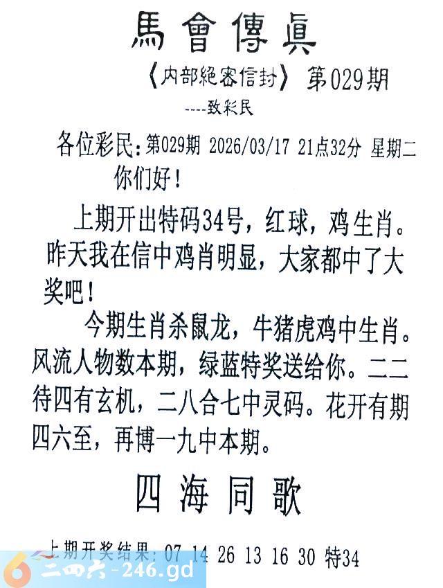 029期:首发推荐:≮馬會傳眞≯→(香港正版)